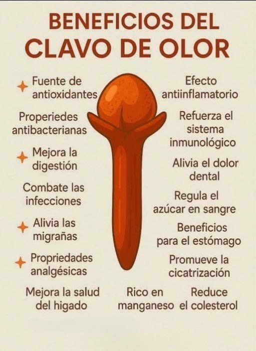 El clavo es rico en compuestos antioxidantes que ayudan a combatir los radicales libres, responsables del envejecimiento celular y de diversas enfermedades crónicas.